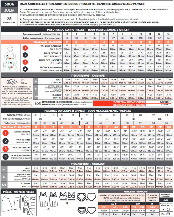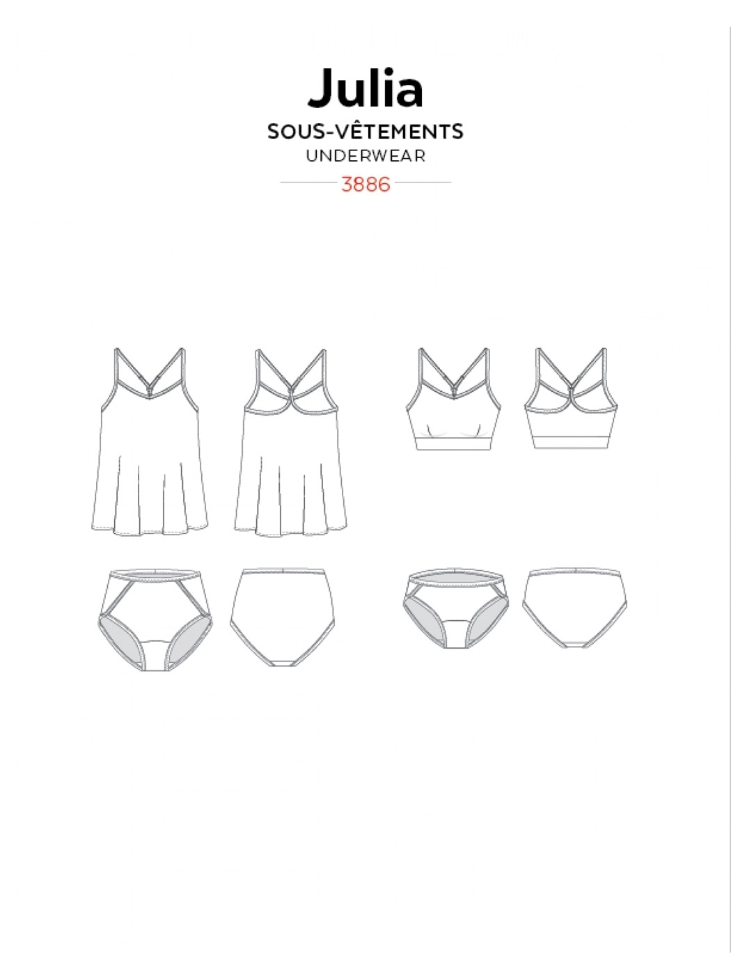 Schnittmuster für einen Bikini oder Unterwäsche mit dazu passendem Trägershirt. Geeignet für elastische Funktionsjersey, Trikotstoffe etc.