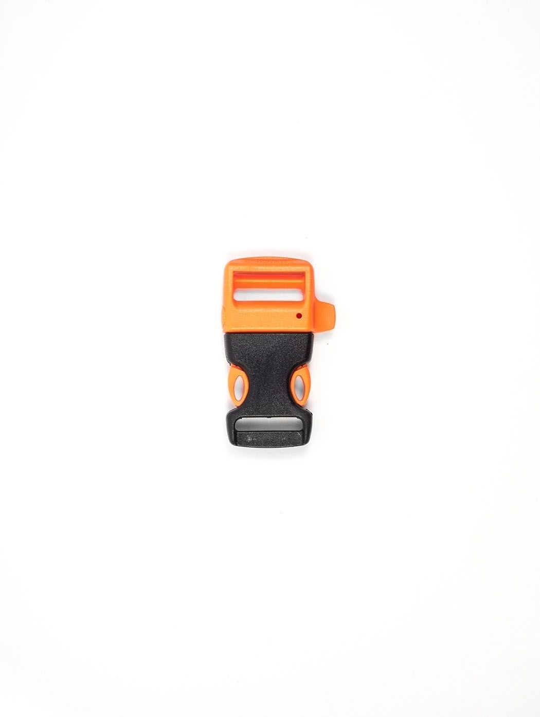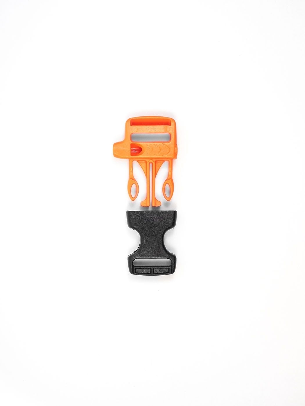 Praktische Kombi aus Schnalle und Signalpfeife. So ist die Pfeife wirklich immer mit dabei. Verwendung ist wie ein ganz normaler Blitzverschluss. Das Gurtband wird am männlichen Teil eingeschlauft, beim weiblichen Teil muss es zusammengenäht werden. Der weibliche Teil der Steckschließe ist an den Rändern verstärkt, um die Stabilität zu erhöhen.