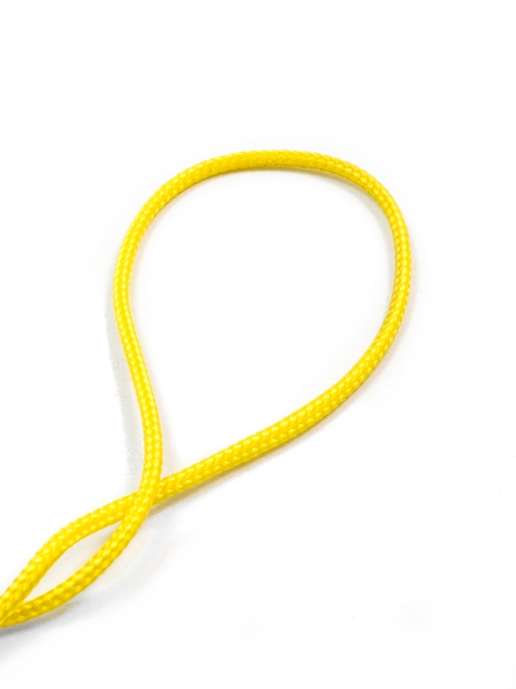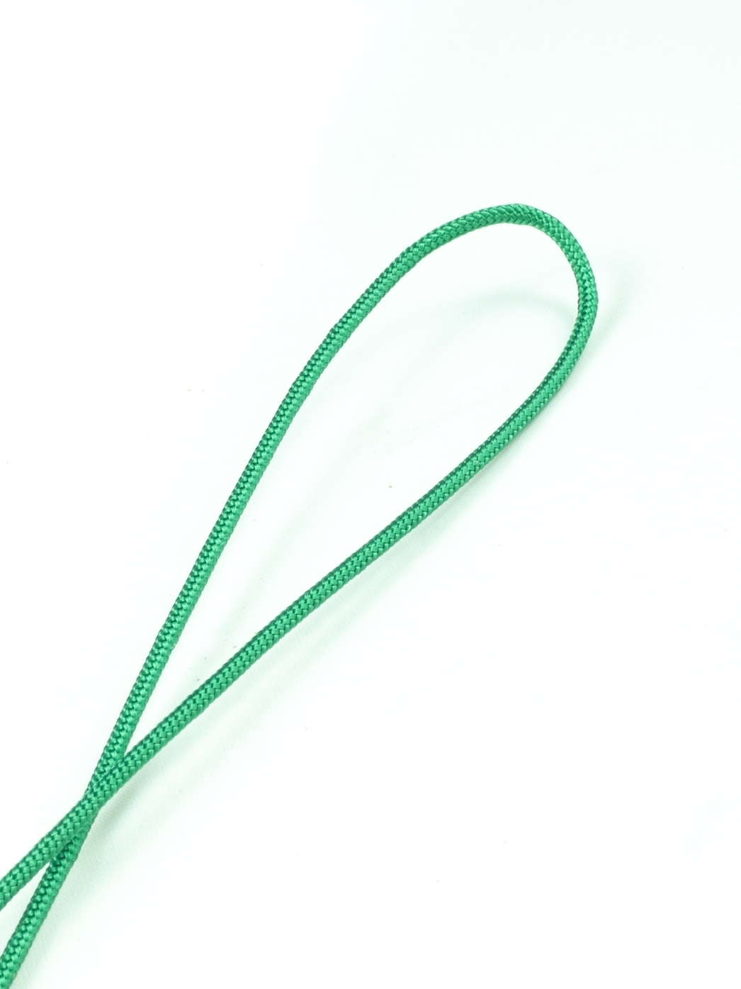 16-fach geflochtene Polyester-Kordel mit Dyneema®-Kern. Sehr geringe Dehnung, sehr widerstandsfähig, Arbeitsdehnung < 3%. Fester Griff, die Kordel ist relativ unflexibel, lässt sich aber gut Knoten.