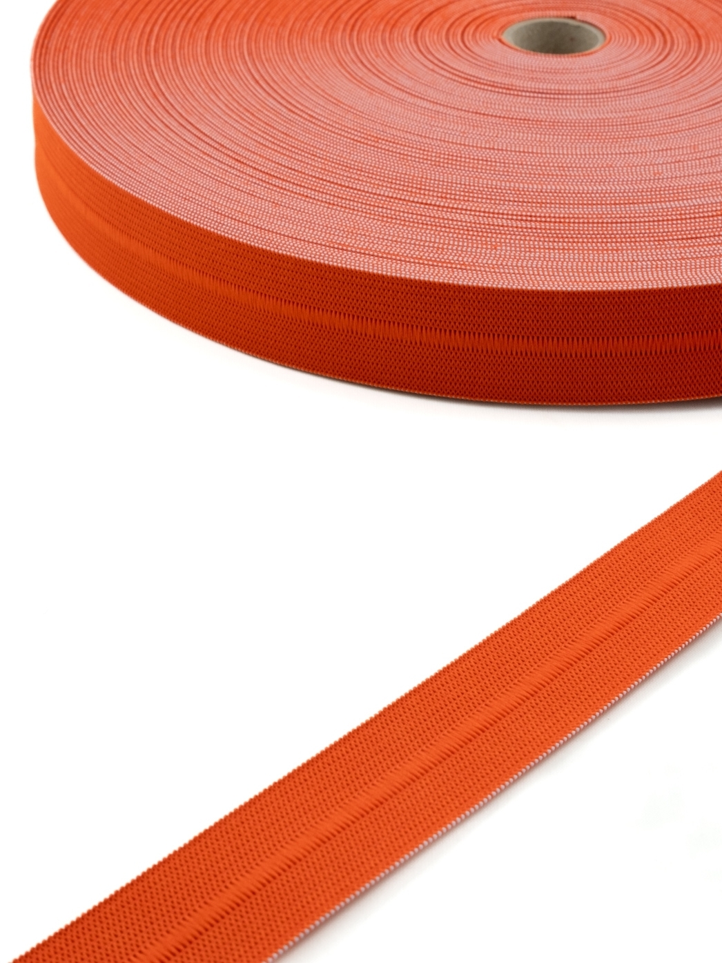 Mit dem elastischen Einfassband können Kanten und Bündchen von elastischen Geweben sehr gut eingefasst werden. Durch die vorgefertigte Falzkante in der Mitte des Bandes läßt es sich gleichmäßig um die Kante legen.
