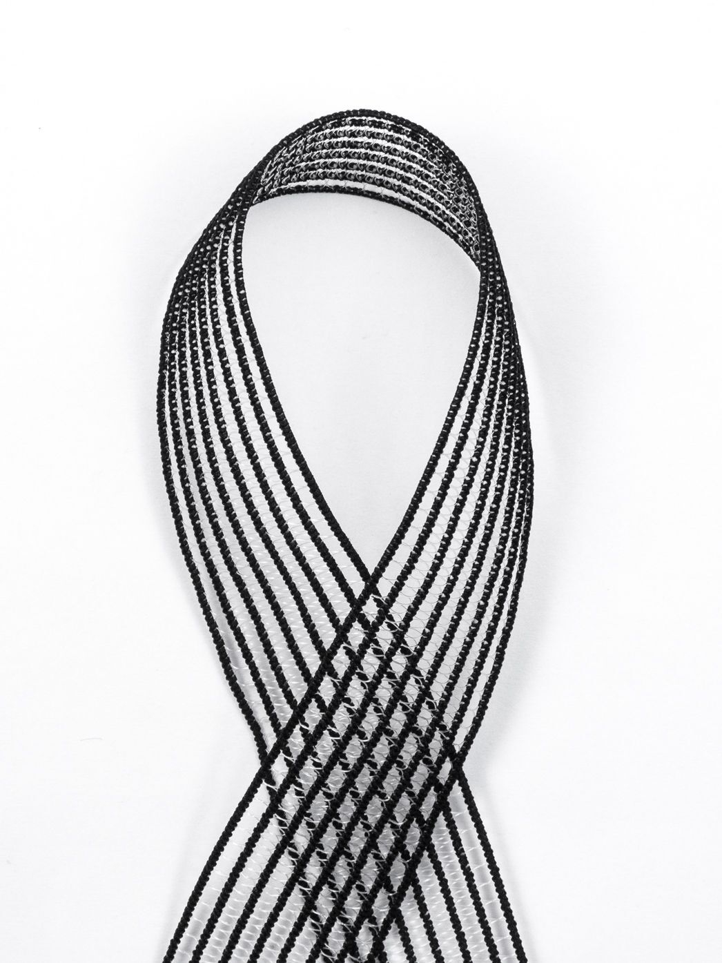 Dieses weiche, hochelastische Gitterband besteht aus längs verlaufenden, mit weichem Polyester ummantelten Elastik-Fasern, die durch transparente Polyester-Fäden auf Abstand gehalten werden. Dadurch entsteht ein Band, das für seine Spannkraft erstaunlich flach und unscheinbar zu verarbeiten ist. Das Band sollte von Gewebe eingefasst oder flächig aufgenäht werden. Vernäht wird es möglichst durch die Abstandsfäden, da so die Elastikfasern nicht beschädigt werden. Durch die geringe Materialdicke nimmt es kaum Feuchtigkeit auf und trocknet extrem schnell. Ideal als elastisches Band bei Unterwäsche oder anderen leichten Bekleidungsteilen oder als Kräuselband.