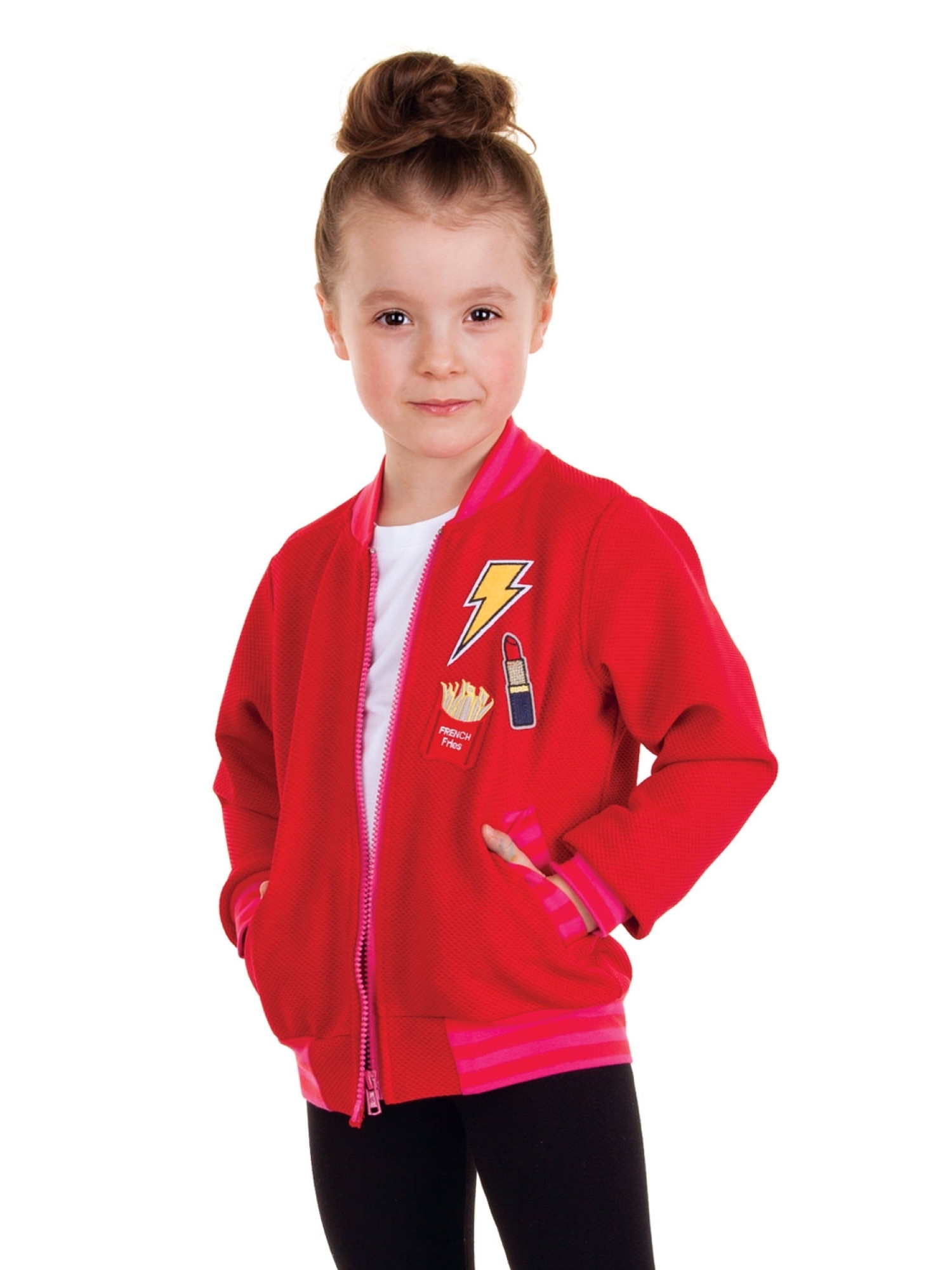 Pattern for a bomber jacket. Can be sewn with many different kinds of stable knits or slightly stretchy fabrics. Also perfect for Softshells.
