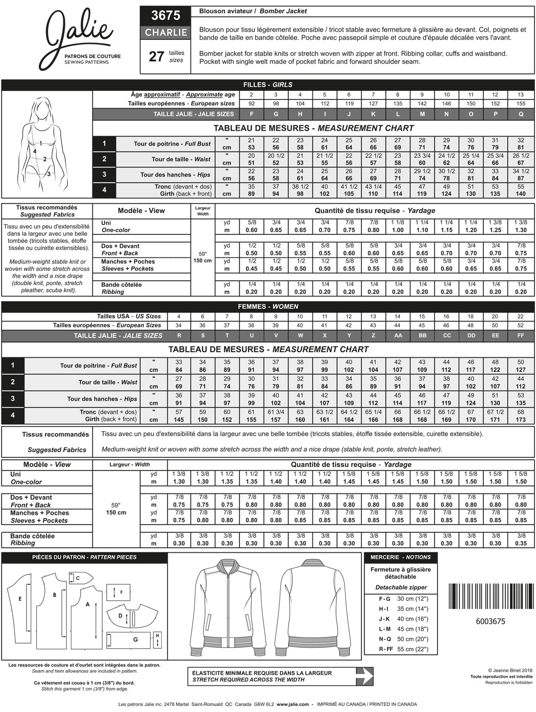 Further links to " Bomber Jacket/Blouson, sewing pattern J3675"