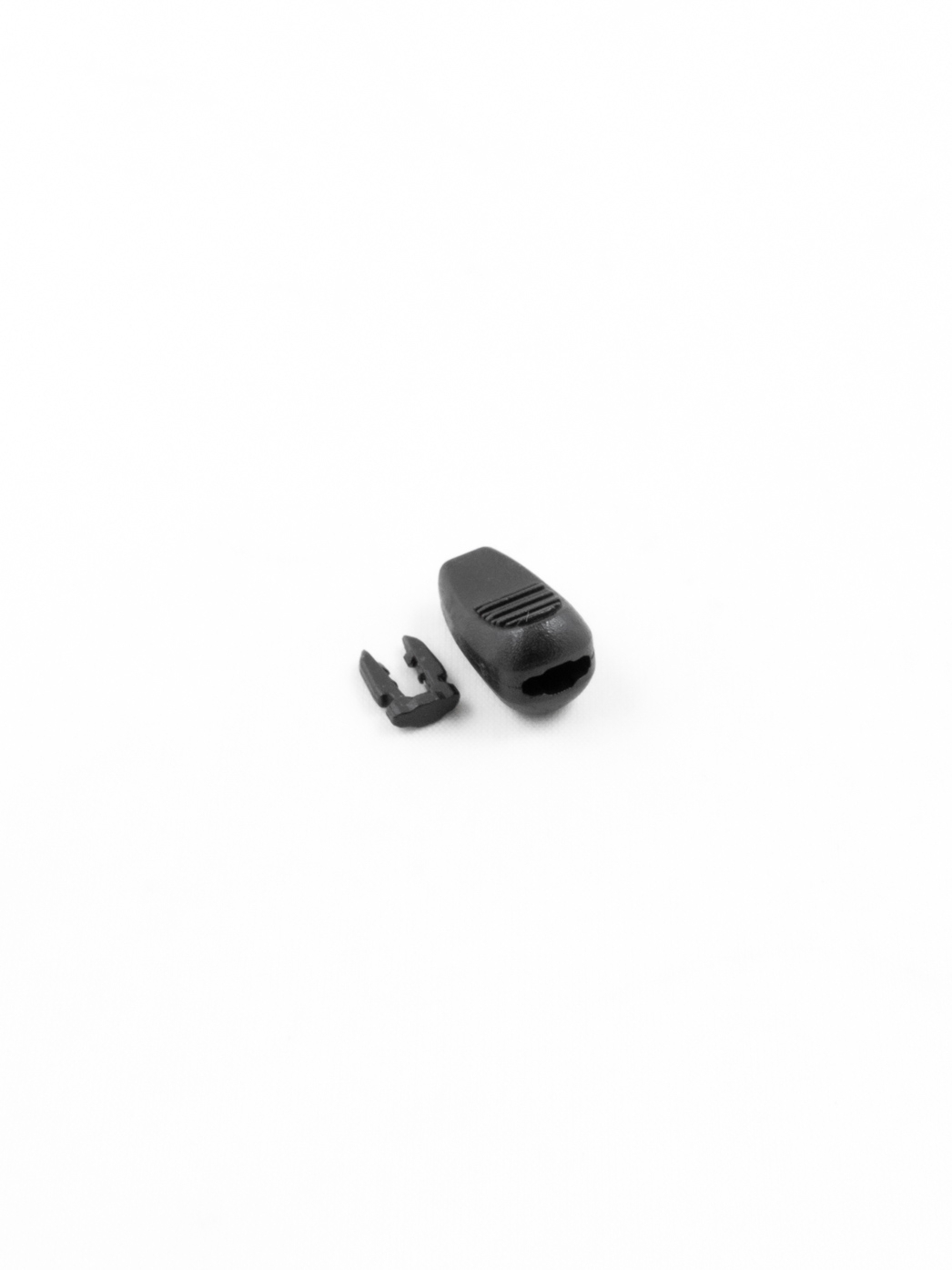 Ergonomic cord end for cords with a diameter of 3mm. The ribbed surface and drop-shaped design provide a good grip, even when operating with gloves. Ideal as a handle at the end of a cord, e.g. on the drawstring on a jacket hood, on Backpacks, bags, etc. The cord end is in two parts and cannot be separated after being pushed together. To improve the hold of the cord, the end of the cord should be melted and thus slightly widened.