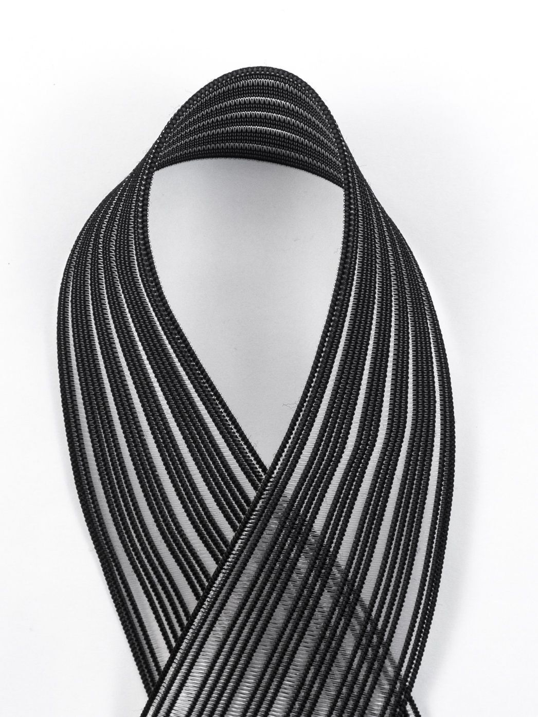 Strong, elastic and very thin grid-braid. Transparent polyester-threads keep the lengthwise elastic threads on distance. Ideal for heavier use than the soft elastic grid braid.
