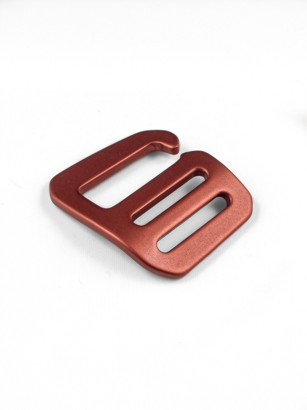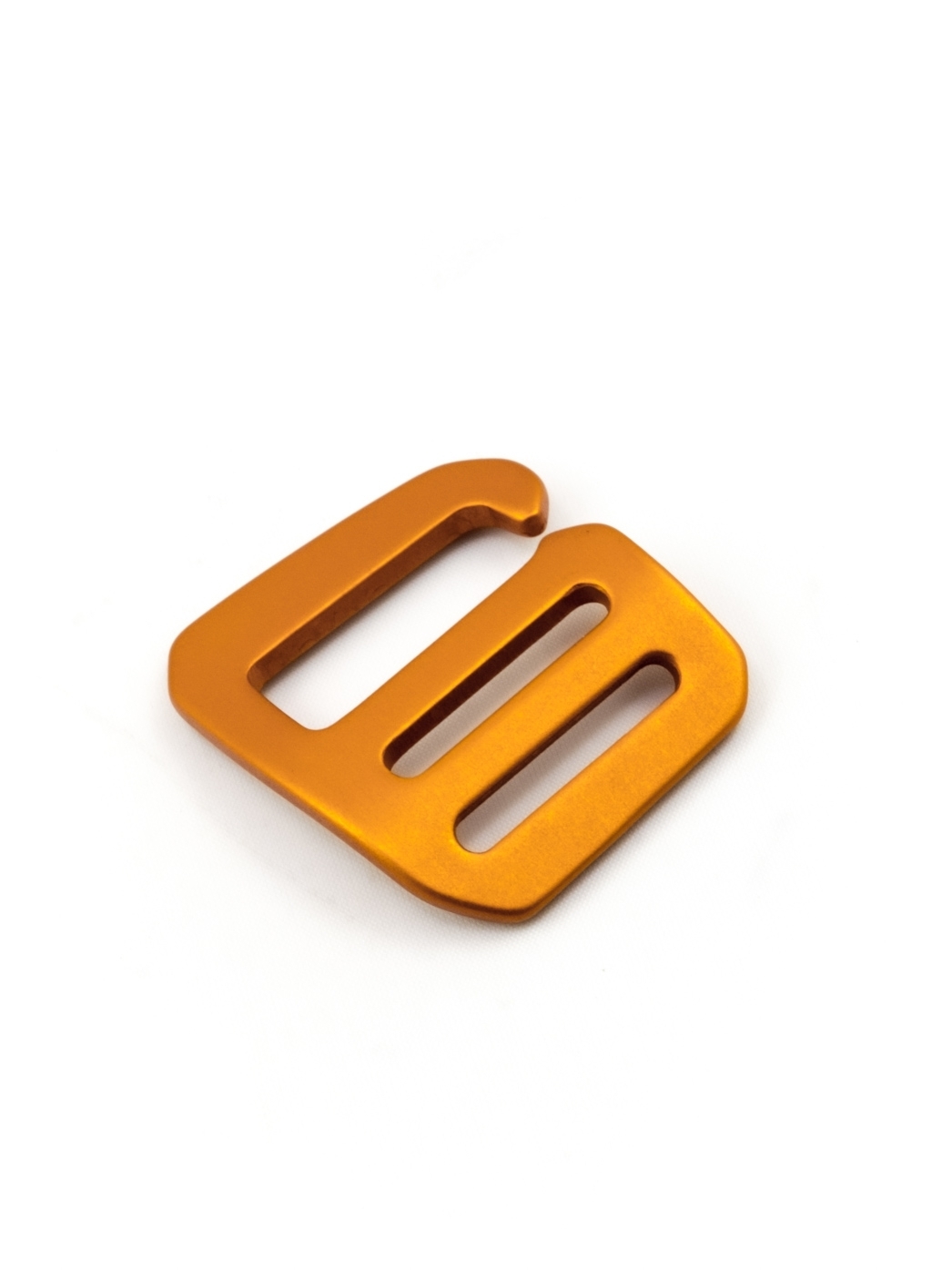 Strong, contoured G-buckle hook for 25mm wide webbing made out of durable, anodized aluminium. With this hook you can easily attach an adjustable webbing to a loop made of webbing. For use with the opening to the right side, the buckle must be hooked from the left side. Please note the infomation on suitable webbings below.