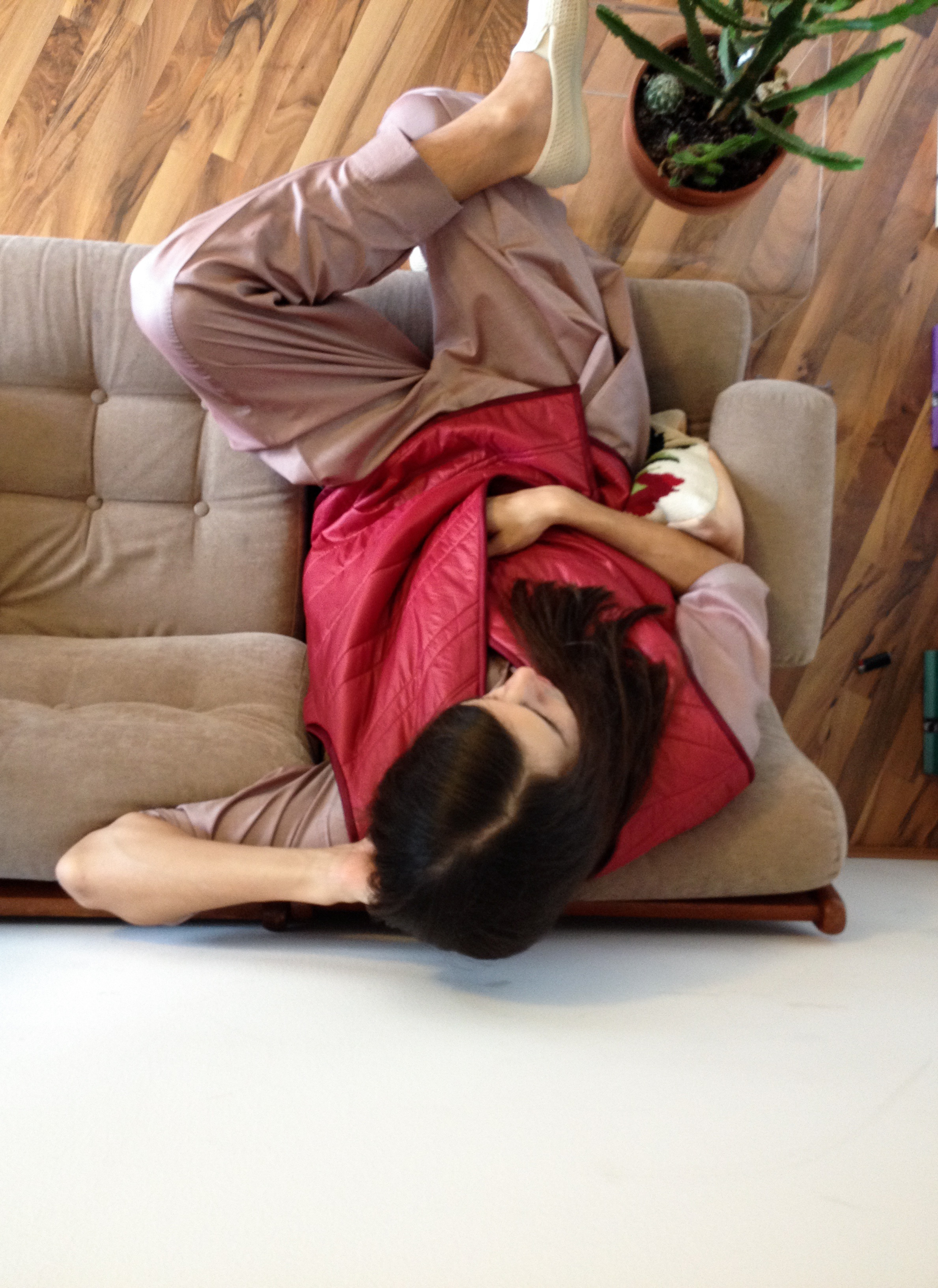 Theresa used some of our materials for her bachelor thesis. The result is a cosy vest with lining fleece and topstitching, closable with a leather belt. The lining is made of cotton satin. For the outer material she used our Ripstop nylon, down proof, ultra light, 10den, 27g/sqm in the colour wine red. And then she photographed the whole thing creatively. Very nice, thank you very much!
