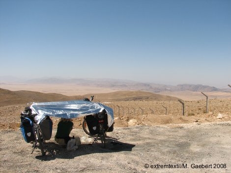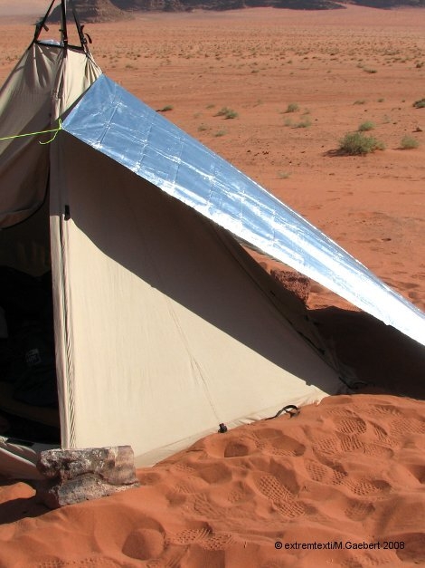 Since the cotton tipi was already heavy enough during the tour in Jordan, the additional sun protection could not weigh much...