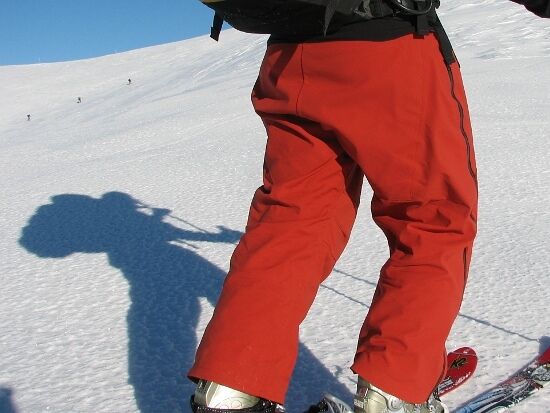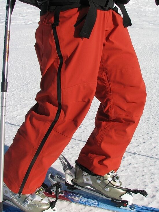 The ski pants on the first tour in the Tatra. The side zipper allows them to be opened all the way to the top.