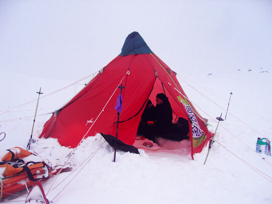 for our last snowshoe tour (03/12) in Norway (Hardangervidda) we made a lavvu ( tipi) completely out of materials from extremtextil. The lavu served as a gathering tent and with its construction (three poles - without "disturbing" central pole) withstood even the strongest gusts of wind.