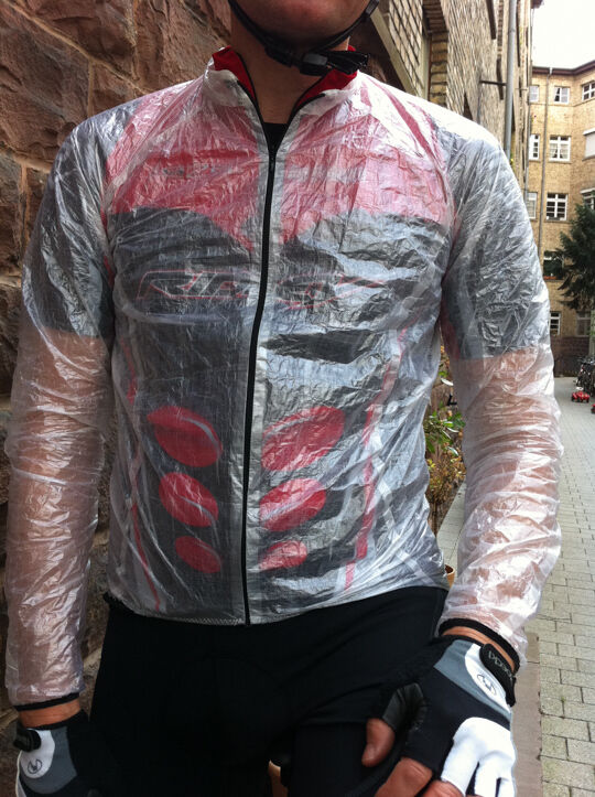The result: the jacket weighs just 40gr, is waterproof and nicely small for the back pocket of the jersey.
