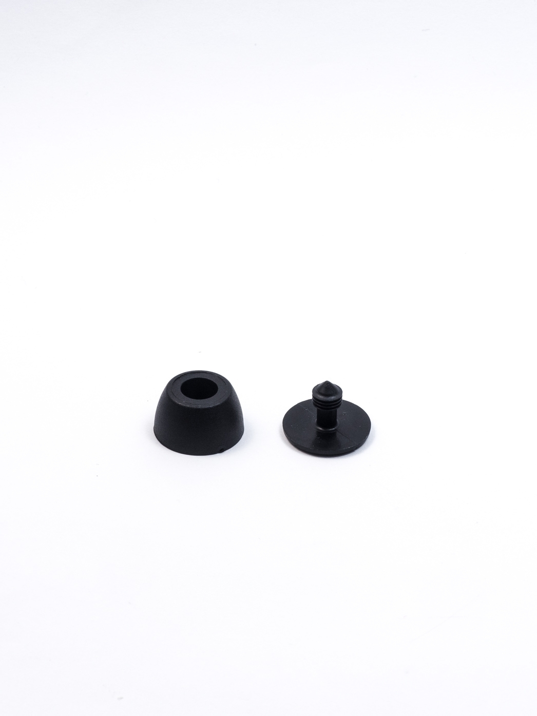 2-part luggage foot for the base of luggage etc.. Easy application: push the stud through a hole in the fabric and press the foot onto the stud - ready! Requires a hole of app. 5mm diameter.