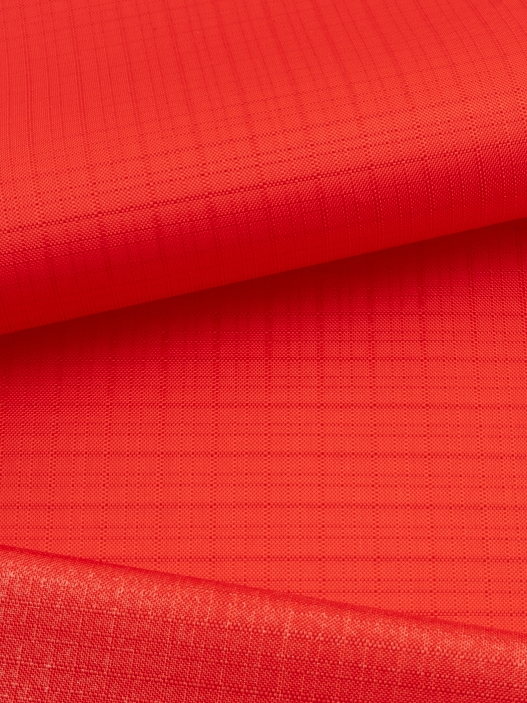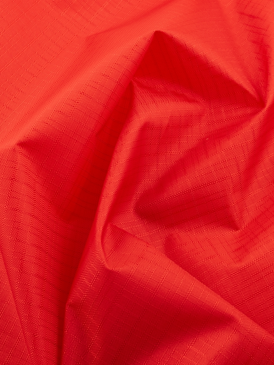 Sturdy nylon 6.6 with a thin PU coating on the inside. The material was originally produced for ski airbags. The fabric is therefore weight-optimised, with a focus on very high stability and tear resistance, which it achieves through a so-called 'twin cross ripstop'. The fabric feels slightly stiffer and more 'board-like' than other nylons with a PU coating.