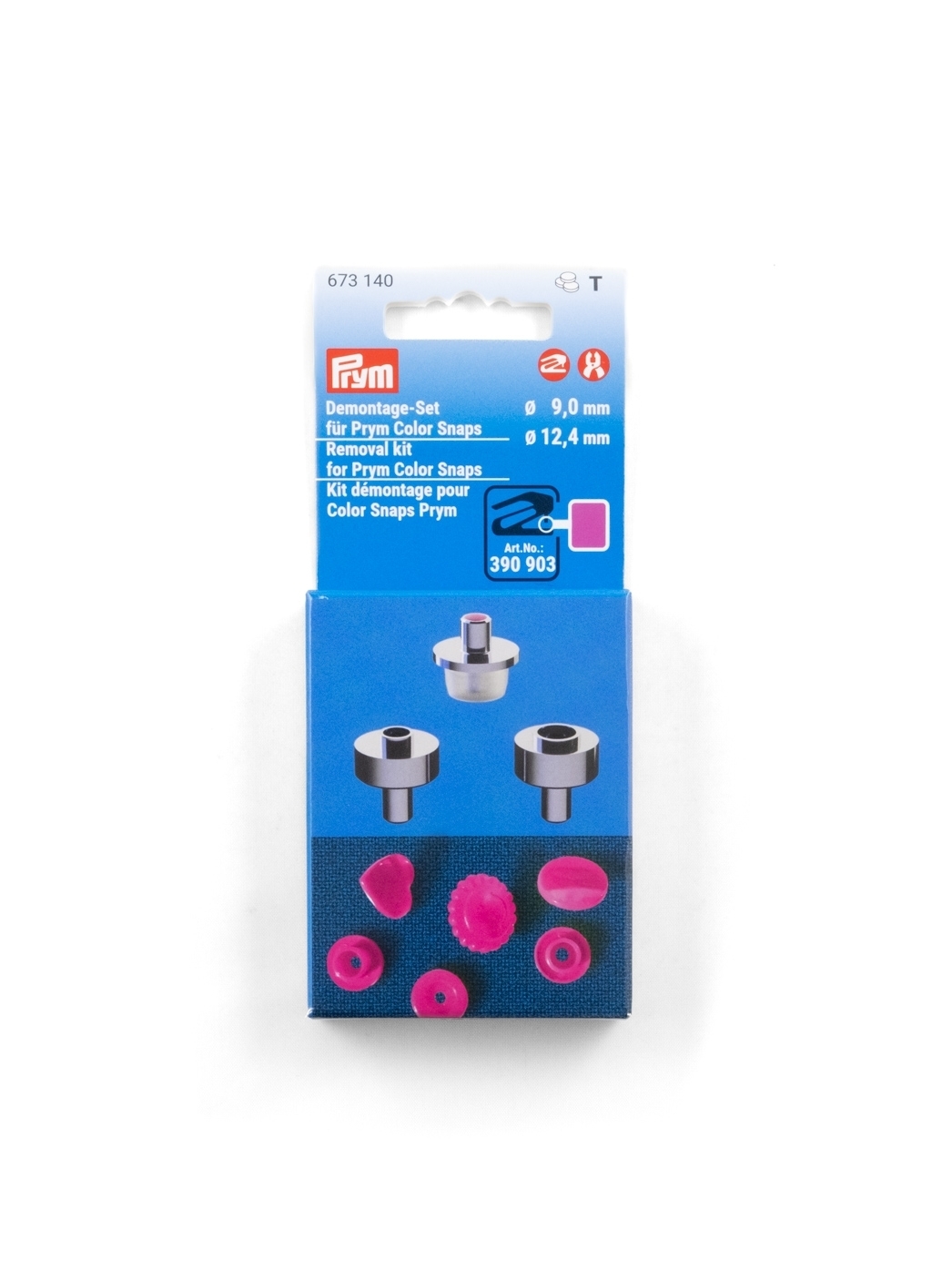 The tool set can only be used in combination with the Prym Vario pliers and is only intended for use with Prym Color Snaps 12.4mm.