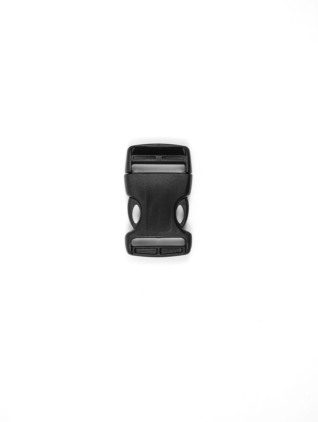 This buckle can be looped at the male part and at the female part the webbing has to be sewn to be attached. The addition of a center support rib makes it very crush resistant.
