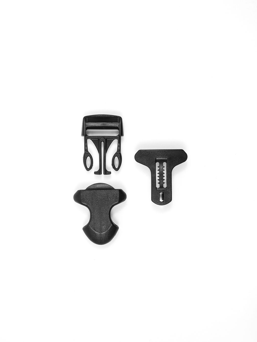 The female part of this buckle can be attached to fabrics of up to 3,8mm thickness without sewing. Inkl. male part.