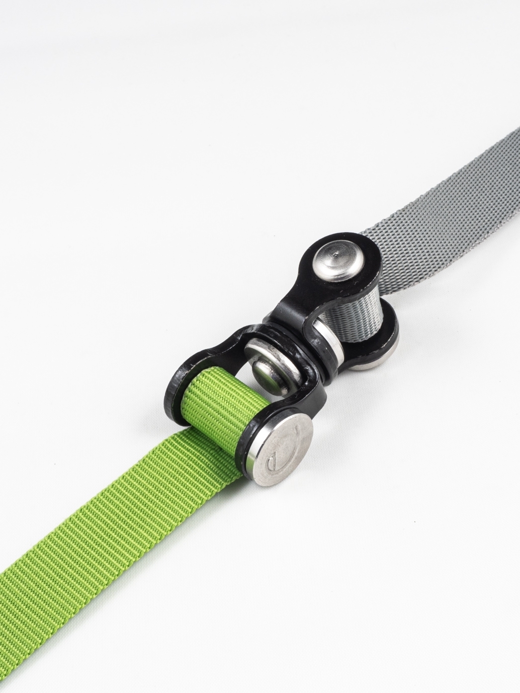 Super-stable swivel for up to 16mm wide webbing. The parts were designed for use on via ferrata sets and can withstand corresponding loads. The webbing must be threaded and sewn on both sides. We have purchased the swivel connector as a remaining stock item and can therefore offer them at a very favourable price. However: only while stocks last.