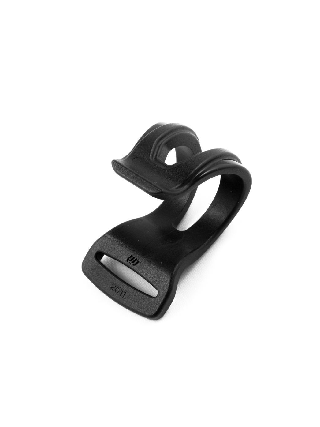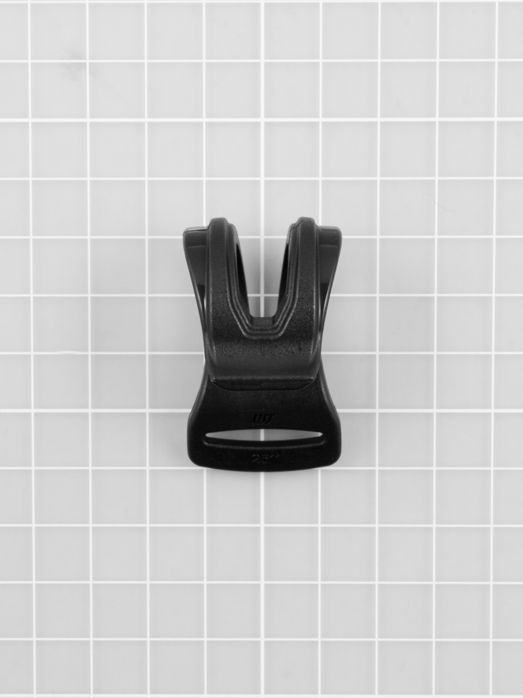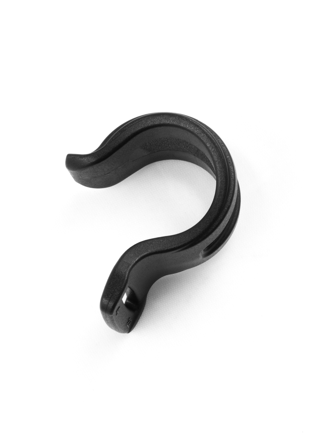 Sturdy and lightweight hook for tent poles, rods or tubes around 22mm diameter. The hook is flexible and can therefore be used for a wide range of diameters. At a diameter of 22mm it is already relatively secure. The hook is ideal for attaching the inner or outer tent to the tent poles. With a holder for webbing up to 15mm wide.