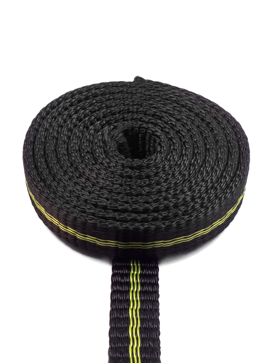 Strong, sturdy polyamide webbing with Dyneema® core in 12mm width. With 3 grey, woven-in identification stripes in the middle of the webbing. Originally produced for mountain sports to secure people when climbing, but is of course also suitable for many other uses. Due to its thickness, it only works to a limited extent with the buckles from the range.