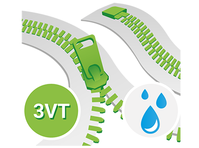 3VT Aquaguard teeth zips are windproof and highly water repellent thanks to their matt coating on one side, making them ideal for use on rainwear or softshells. Under "one-way Separating" we offer you a small range of separating Aquaguard 3VT teeth zippers with a one-sided slider. Separable zips are the right choice for all applications where the zipper has to be completely dividable, e.g. for front zips on jackets. This slim 3VT version with its approx. 4.5mm wide teeth rail is ideal for accessories, lightweight garments and for ultralight projects as an alternative to the stronger 5VT Aquaguard. It is optimal for applications with lower demands on robustness and holding power, but it scores with low weight and high flexibility. Two-way Aquaguard Vislon zips can be found with the Aquaguard 5VT teeth zippers.