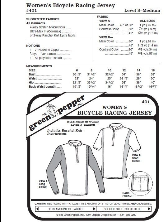 Schnittmuster für ein Fahrrad-Jersey-Shirt für Frauen.