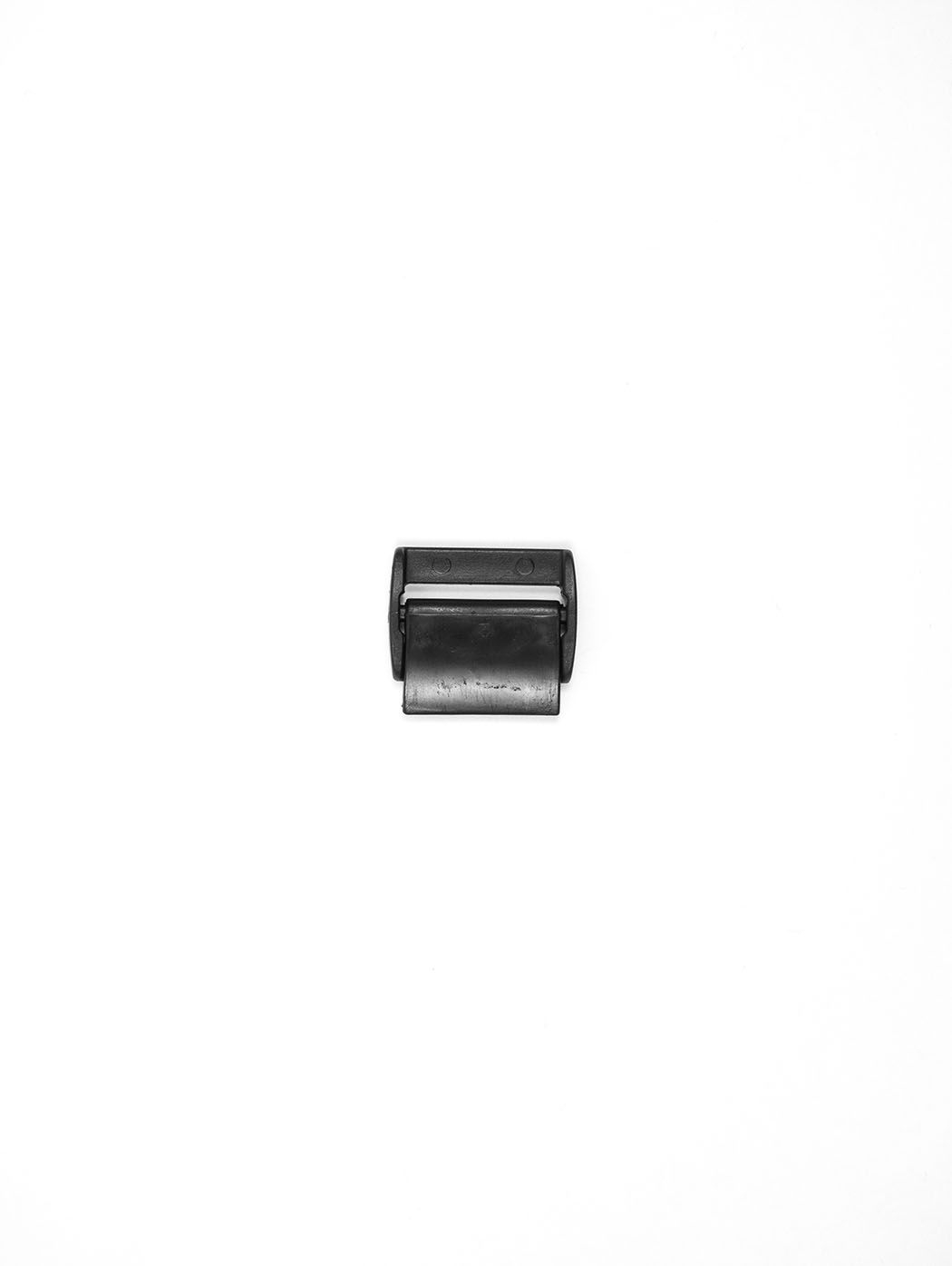 Kleine, leichte Ausführung der Klappschnalle. Auf der einen Seite wird das Gurtband festgenäht, auf der anderen festgeklemmt und kann so einfach verstellt werden.