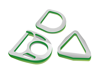 Die Form des D-Rings erklärt sich aus der Bezeichnung am besten: auf einer Seite gerade, auf der anderen Seite halbrund - wie ein großes D. Der D-Ring eignet sich daher sehr gut zur Verwendung mit Gurtbändern, besonders wenn die Verbindung nicht zu starr sein soll oder zur Verbindung von Gurtband und Kordel. Auf der geraden Seite lässt sich der D-Ring mit Gurtband gut befestigen und fixieren. Das auf der runden Seite durchgeschlaufte Band oder die dort befestigte Kordel kann immer noch in verschiedene Richtungen bewegt und abgespannt werden.