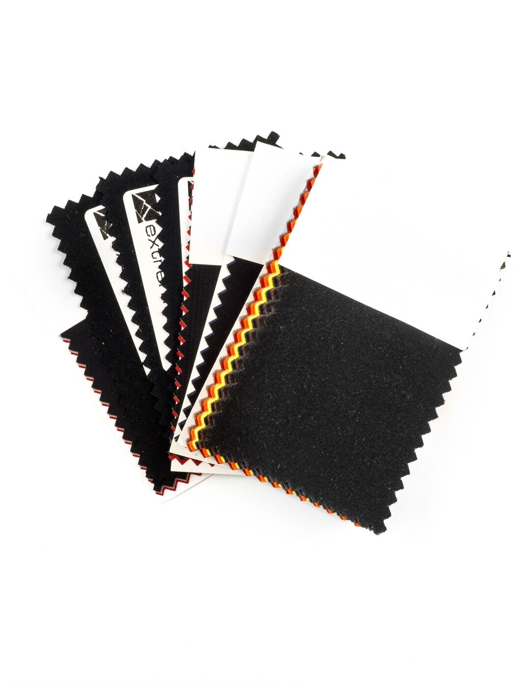 Musterset unserer Standardstoffe für Regenbekleidung, dabei sind Membranstoffe, als auch Etaproof und Softshell. In dem Set sind die folgenden Artikel inklusive aller Farben enthalten. Alle Muster sind mit Artikelnummer und Artikelbezeichnung markiert.