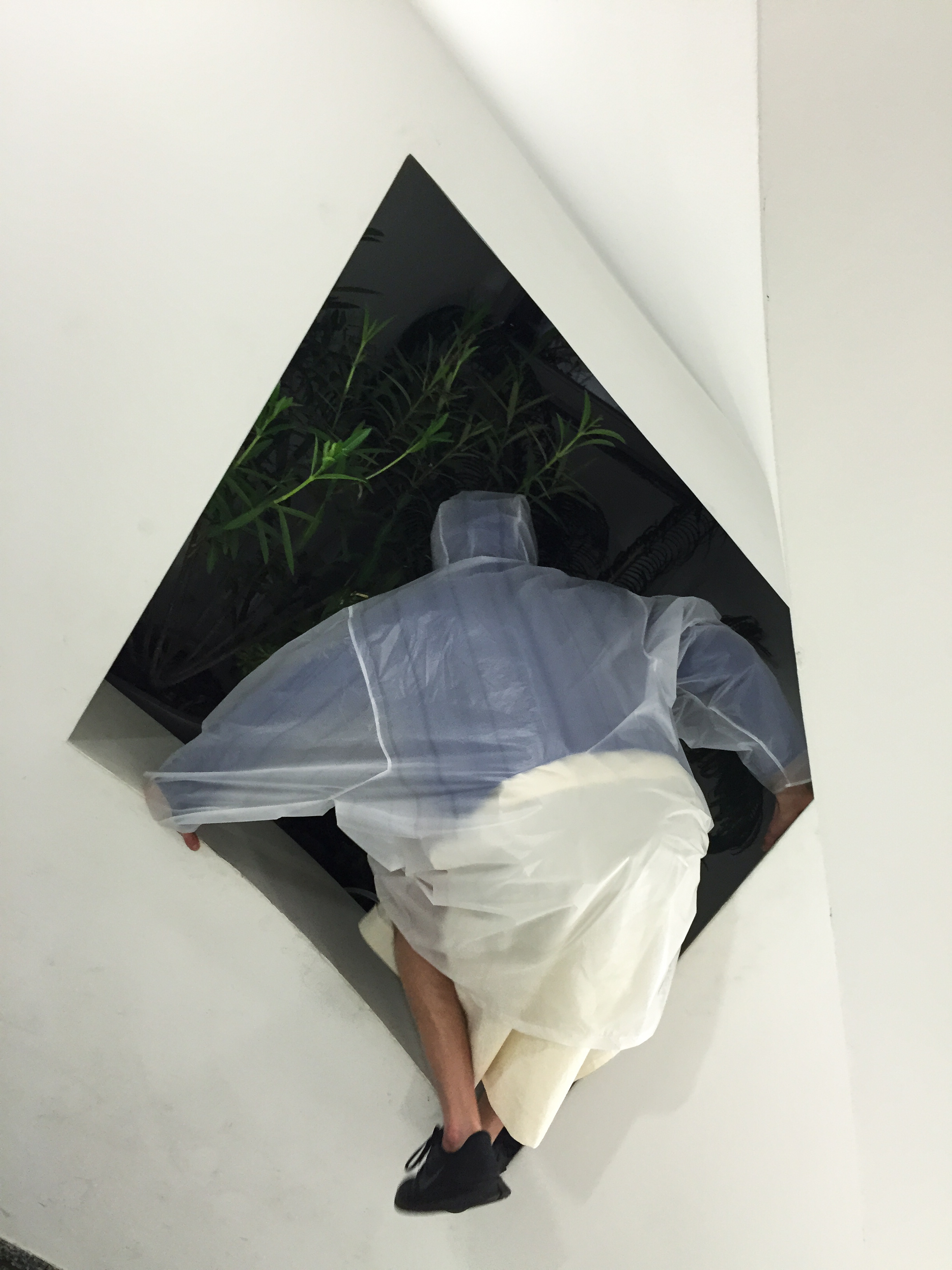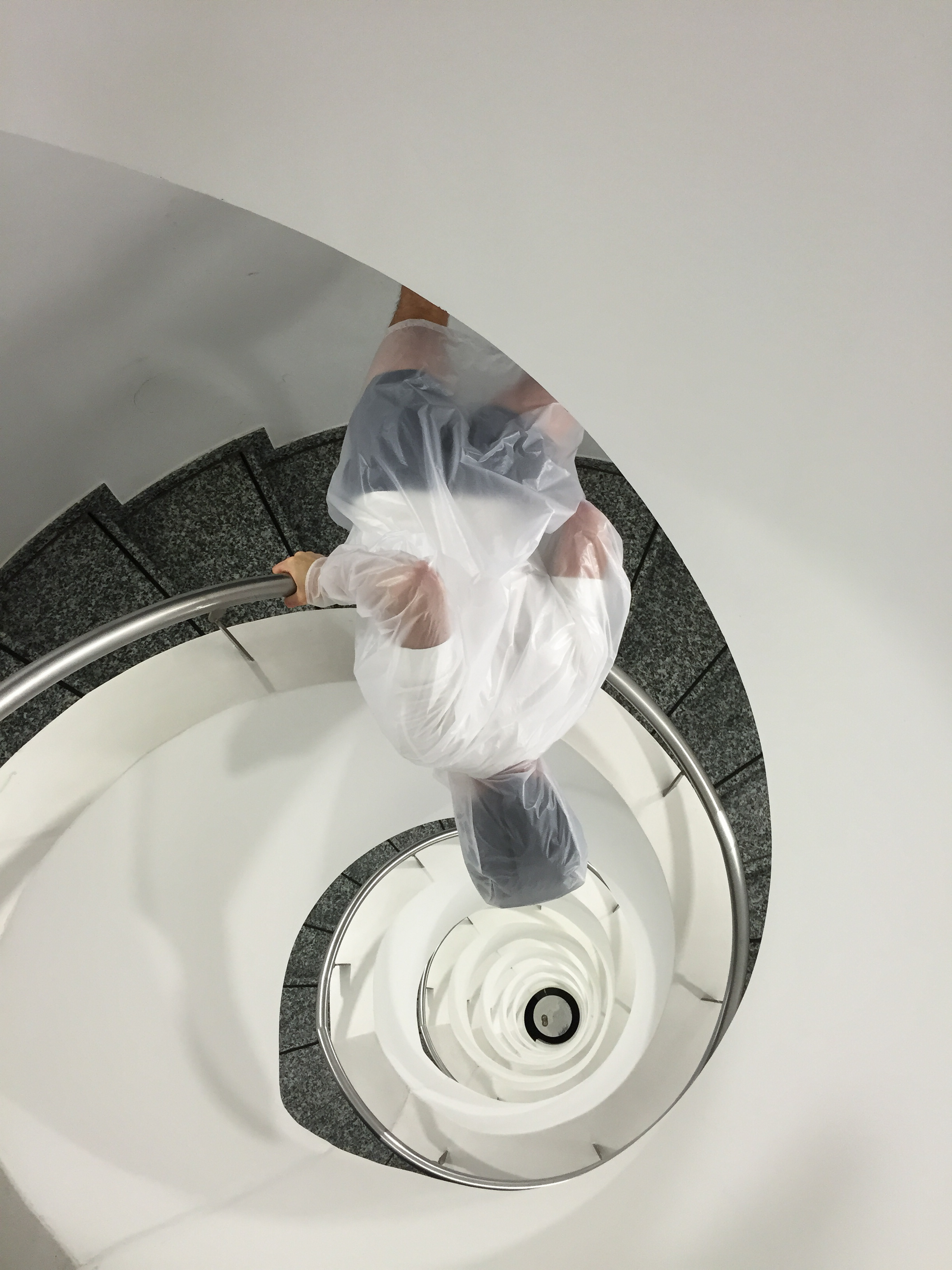 Für Ihre Bachelorarbeit hat Theresa eine Regenjacke/einen Anorak mit viereckig eingesetzten Armen und großer Bauchtasche aus unserem beschichteten Gleitschirm-Nylon, 37g/qm in weiß genäht. Das Material würden wir für den echten Outdoor-Einsatz nicht empfehlen, diesem Projekt hat es aber das gewisse optische Etwas gegeben. Und das ganze hat sie dann noch originell fotografiert! Ein echter Hingucker.