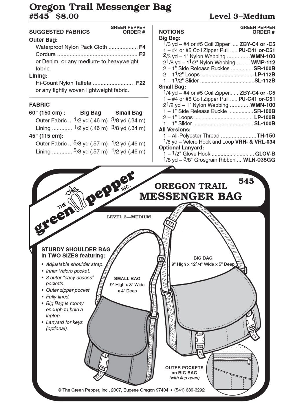 Oregon Trail Umhängetasche, Schnittmuster GP545