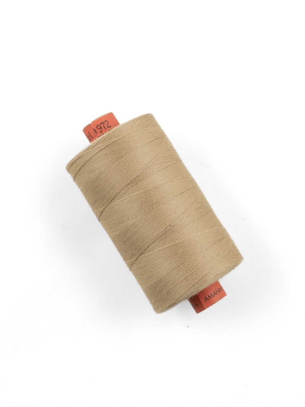 Das rasant Nähgarn von Amann besteht aus einem Polyesterkern, der mit einem Baumwollmantel umwickelt ist (Core-Spun Garn, Umspinnungszwirn). Die Baumwolle quillt bei Feuchtigkeit auf und kann unter idealen Bedingungen die Nahtlöcher abdichten. Für eine dauerhafte Wasserdichtigkeit sollte die Naht trotzdem mit Nahtdichter abgedichtet werden. Kräftiges Garn - geeignet für feste Gewebe.