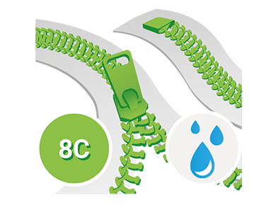 Aquaguard von YKK steht für stark wasserabweisende und winddichte Reißverschlüsse von YKK, die für Regenbekleidung, Softshells als auch für Taschen und Rucksäcke geeignet sind. Auf die Rückseite des Bandes ist bei diesen Spiral-Reißverschlüssen eine PU-Beschichtung aufgetragen, die beim Einnähen nach außen gelegt wird. Damit ist der Reißverschluss von außen nahezu dicht, wodurch Abdeckleisten minimiert werden können und somit Gewicht und Verarbeitungsaufwand gespart wird. Die Stärke Aquaguard 8C ist mit seiner ca. 7,1mm breiten Spirale eine etwas kräftigere Breite. Sie ist ideal für Anwendungen, die etwas höherer mechanischer Belastung ausgesetzt sind wie z.B. schwere Jacken, Taschen aus kräftigeren Stoffen oder für sehr intensive Nutzung wie an schweren Rucksäcken oder Bikepacking-Taschen. Wir bieten den Aquaguard 8C-Spiralreißverschluss als Meterware an. Einzelne Schieber für die 8C Aquaguard-Reißverschlüsse finden Sie auch hier in der Kategorie