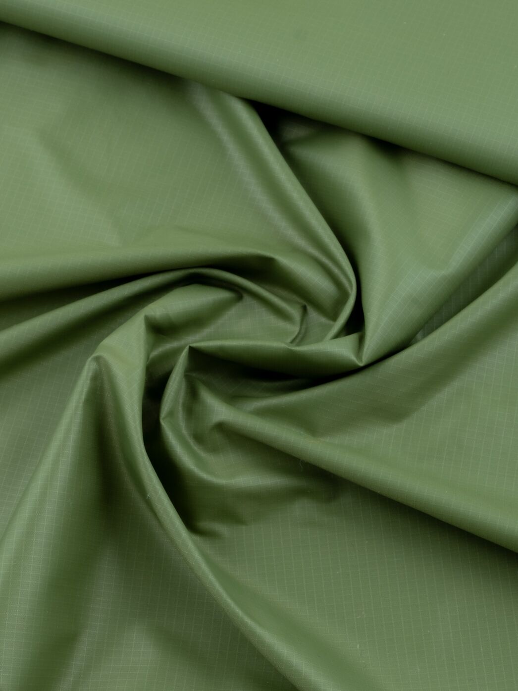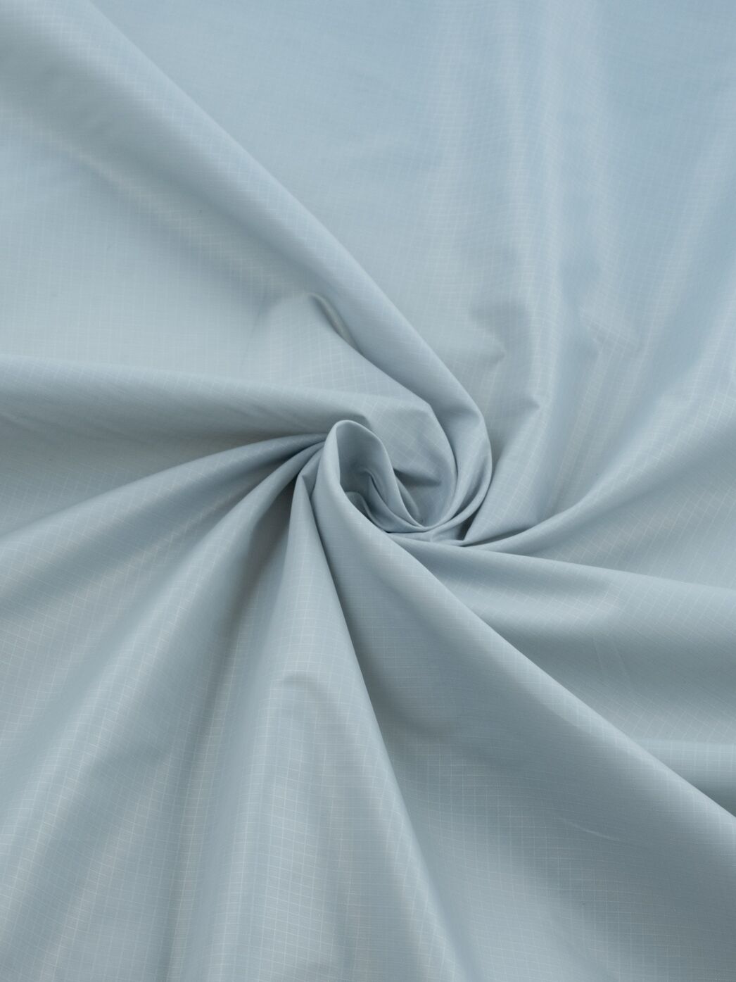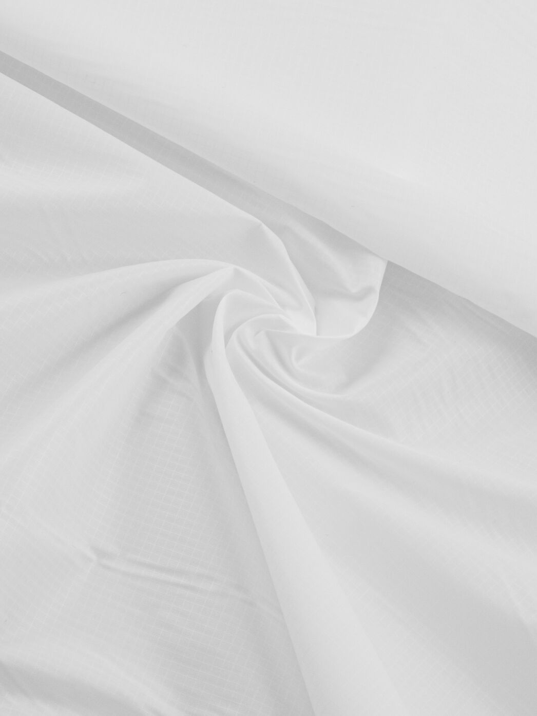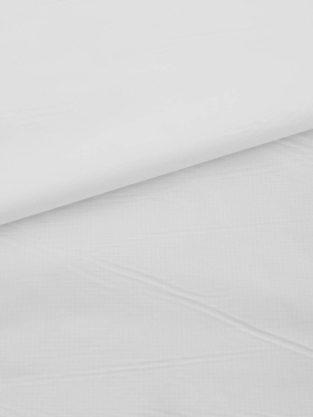Leichtes und weich fallendes Nylon mit einer dezenten Ripstop-Struktur und einseitiger Kalandrierung. Durch die Kalandrierung wird der Stoff daunendicht und winddicht. Beide Seiten des Stoffes haben einen leichten Glanz, wobei die kalandrierte Seite etwas glänziger ist.