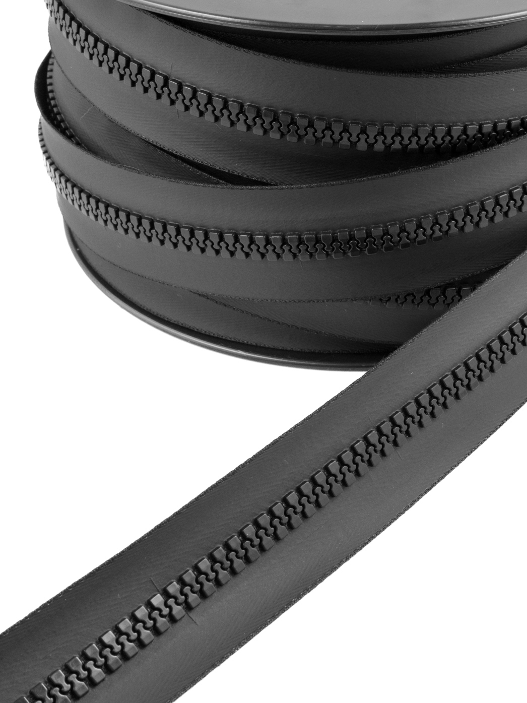 Mit der Meterware lassen sich nicht-teilbare Reißverschlüsse von gewünschter Länge selber herstellen. Nicht zu verwechseln mit wasserdichten Reißverschlüssen, wie sie z.B. bei Trockenanzügen verwendet werden. Die Größe 8 mit einer Schienenbreite von ca. 7,7mm eignet sich hervorragend für Reißverschlüsse an robuster Regenbekleidung oder für schwere Rucksäcke und Taschen.