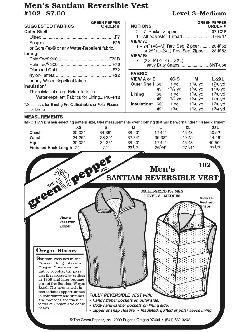 Weiterführende Links zu " Santiam Weste zum Wenden für Männer, Schnittmuster GP102"